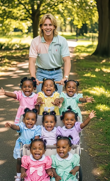 The first years were a symphony of joyful chaos. The house brimmed with laughter, crying, squeals, babble, and the constant scurry of tiny feet. There were days when Thomas barely slept, nights when he juggled three bottles at once, mornings when he dressed the girls in whatever clean clothes he could find because matching outfits were a luxury far beyond his abilities. He learned to braid hair from a church elder who watched him fumble with combs until she finally pushed him aside and said, “Lord, sit down and let me help you.” He became an expert in inexpensive meal planning, bedtime storytelling, and calming fears at two in the morning.