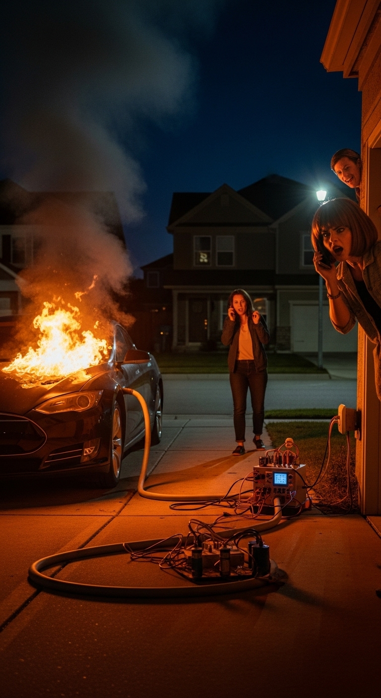 HOA Karen Kept Stealing My Electricity to Charge Her Tesla — So I Created a Trap That Burned Her Car